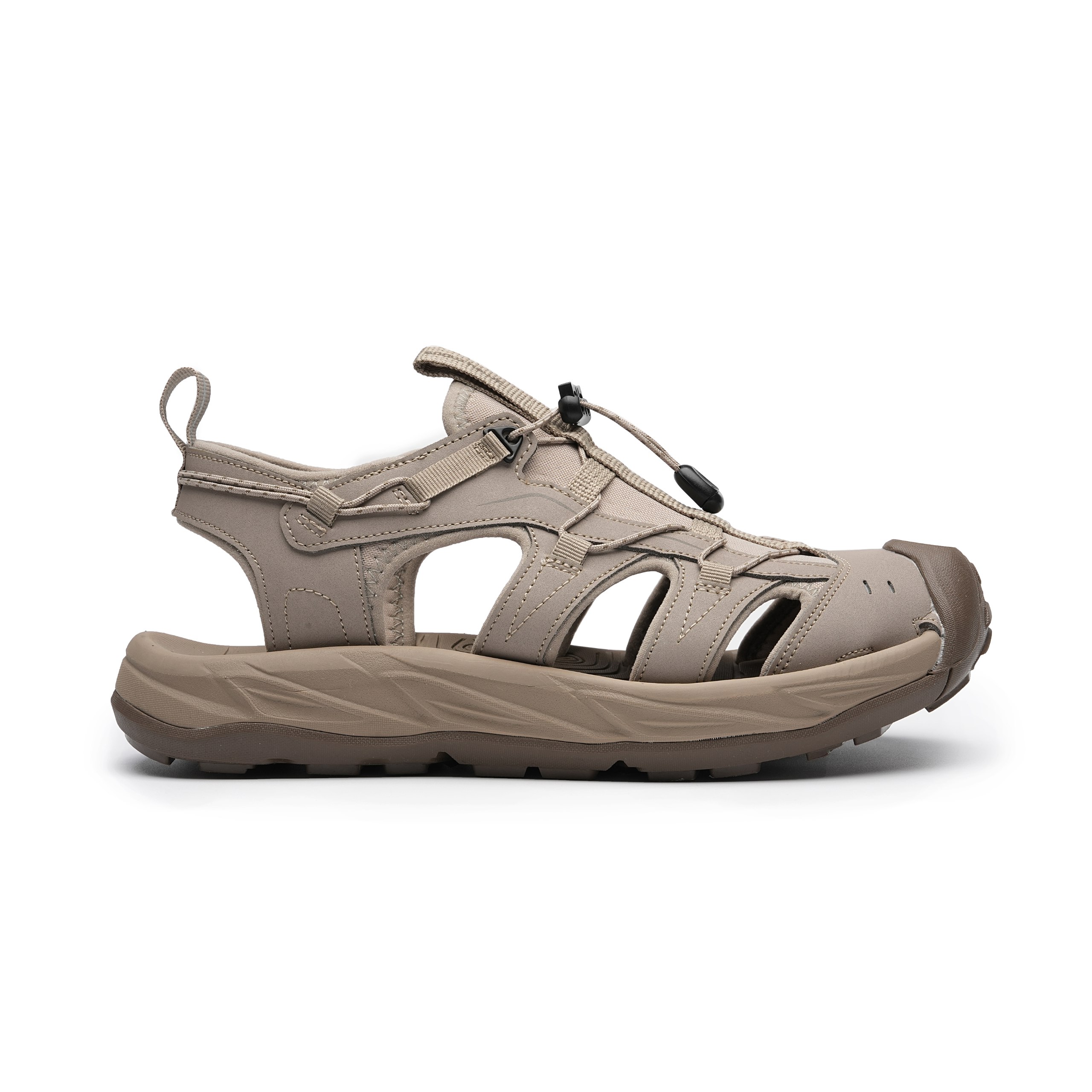 بسته شدن صندل با یک سیستم قوی و قابل تنظیم صورت می‌گیرد که به کاربر امکان می‌دهد صندل را با دقت و امنیت بیشتری بسته و تنظیم کند، از این رو به دلیل قابلیت تنظیم بودن، به راحتی با انواع پاها سازگار است.