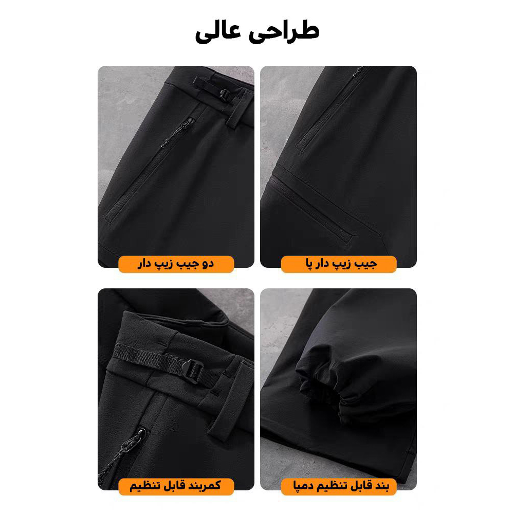 کمر قابل تنظیم با بند جانبی، فیت عالی و بدون نیاز به کمربند را فراهم می‌ کند و باعث می‌شود در طول مسیر هیچ لغزش یا آزاردهندگی ایجاد نشود. دوخت ارگونومیک در قسمت زانو نیز گام برداشتن، بالا رفتن یا نشستن را طبیعی و راحت می‌ کند. خشک‌ شوندگی سریع پارچه نیز این شلوار را برای کوه‌پیمایی، سفر و استفاده روزمره در فصل بهار و پاییز به گزینه‌ای کاملاً کاربردی و قابل اعتماد تبدیل کرده است.